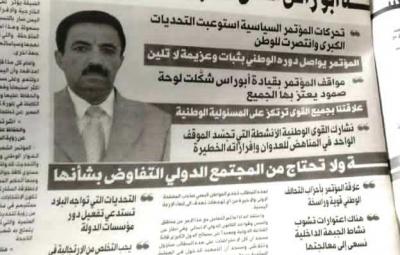 وقال في حوار مع صحيفة »الميثاق«: إن اصطفاف المؤتمريين حول قيادتهم برئاسة الأخ المناضل صادق أمين أبو راس رئيس المؤتمر قد أفشل كل محاولات تمزيق الوحدة التنظيمية للمؤتمر، وإفشال كل المؤامرات في الداخل والخارج على هذا التنظيم الرائد.