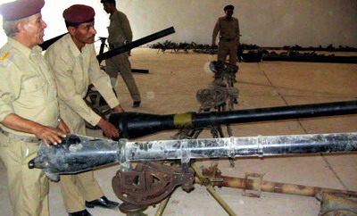 وفي زاوية مقابلة للرشاشات تجمع الصحفيون حول صاروخ ( سام 2) روسي الصنع المضاد للطيران، والذي أوضح مسئول المخازن في رده لاستفسار لـ"المؤتمر نت" أن مداه يصل إلى حيث الطائرة ( فهو حراري ويلحق بالطائرة ).
