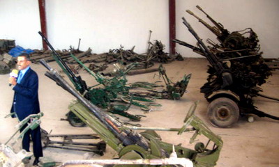 ولكن المسئول العسكري لم يفصح عن الإحصائيات الإجمالية لكل نوع من أنواع الأسلحة، مؤكداً للصحفيين أن مهمته هنا تقتصر على خزن الأسلحة فقط وهناك آخرون قاموا بجمعها؛ مشيراً إلى أن المعني بالإحصائيات هي القيادة فقط.