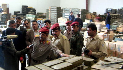 (3) مستودعات واسعة المساحة شاهقة الارتفاع مليئة بالعتاد الحربي والذخائر، اطلع الصحفيون اليوم على محتوياتها في زيارة نظمتها وزارة الداخلية ولن تمحى من ذاكرة عدسات الصحفيين قبل مخيلتهم.