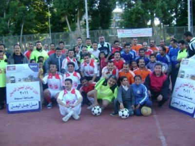 الجمعة, 07-يناير-2011المؤتمر نت-مصر- عبدالله النهـاري - افتتحت أمس الأول بالمدينة الرياضية بجامعة أسيوط المصرية فعاليات دوري الباحثين اليمنيين الدارسين بجامعة أسيوط 2011 تحت شعار من أجل اليمن برعاية مؤسسة الحثيلي للنقل وخدمات الحقول النفطية بحضور كثيف للباحثين اليمنيين الدارسين بكليات جامعة أسيوط. وكانت صفارة الحكم اطلقت مباراة البدء بين فريقي (كلية الهندسة والحاسبات) و (كلية العلوم والزراعة) التي شهدت كرات رائعة وحاول الفريقين الضغط بقوة و الحفاظ على شباكهما خالية وهو ما تحقق لكليهما، بيد أن فريق العلوم والزراعة أضاع فرصة سانحة من ضربة جزاء.