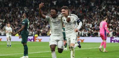 الريال يضرب السيتي بـ"هاتريك" فالفيردي حقق ريال مدريد فوزاً عريضاً على ضيفه مانشستر سيتي بنتيجة 3-0 صفر في ذهاب دور الـ 16 لدوري أبطال أوروبا لكرة القدم، مساء الأربعاء. أحرز فيدريكو فالفيردي نجم وسط ريال مدريد الأهداف الثلاثة في الدقائق 20 و27 و42 من المباراة التي أقيمت على ملعب سانتياغو برنابيو. بهذا الفوز العريض يرد الريال اعتباره من الخسارة 1 - 2 على نفس الملعب أمام مانشستر سيتي في مرحلة الدوري. كما عزز العملاق الإسباني الأكثر تتويجاً باللقب برصيد 15 مرة من فرصه في التأهل لدور الثمانية قبل لقاء الإياب الذي سيقام الثلاثاء المقبل على ملعب "الاتحاد" في إنجلترا. فيما تغلّب نادي باريس سان جيرمان الفرنسي على نظيره تشيلسي الإنجليزي بنتيجة 5-2، في مباراة احتضنها ملعب "بارك دي برينس". وأحرز برادلي باركولا وعثمان ديمبيلي وفيتينيا وخفيتشا كفاراتسخيليا (ثنائية) أهداف النادي الباريسي، بينما سجّل إينزو فرنانديز ومالو غوستو ثنائية "البلوز". وتفوّق نادي بودو غليمت النرويجي على ضيفه سبورتينغ لشبونة بثلاثية، في حين تعادل نادي أرسنال الإنجليزي مع مضيفه بايرن ليفركوزن بنتيجة 1-1. |