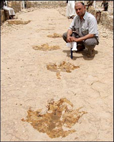 إن آثار الأقدام التي خلفتها الديناصورات كانت ظاهرة فوق الأرض منذ عدة قرون لكن العلماء عثروا عليها مؤخرا من خلال كتابة احد الصحفيين المحليين عنها. لقد عاش أهل هذه القرية جنبا إلى جنب مع هذه الآثار الشهيرة لعدة قرون ولكن لم يمر في خلدهم كم هي مهمة والتي تحولت إلى مكان مهم جدا. يقول يحيى صالح الرشامي الذي وجدت آثار أقدام الديناصورات أمام منزله ""قبل أن نكتشف بأنها لديناصورات كان البعض يعتقد أنها آثار لأقدام جمال عملاقة ، لكن الآن اُخبرنا بأنها آثار أقدام ديناصورات، إن هذا مدهش للغاية لنا ومن حسن الحظ أنني بنيت منزلي حول هذه الآثار ولم أقوم بمحو أي شيء منها. لقد وجدت هذه الآثار في مواقع مختلفة بائنة في قرية المدار والتي هي من نوع "أورنيثوبود" العشبية التي تمشي على قدمين ليكتشف بعد ذلك آثار ديناصورات "سوروبود" التي تمشي على أربعة أقدام وهي حيوانات عاشت جميعها على هذه الأرض . الشواطئ الطينية القديمة وأظهرت النتائج أن آثار الأقدام هي لديناصورات عاشت قبل نحو 150 مليون سنة، وكانت تهرول بنفس السرعة على الأرجح في اكبر منطقة في الجزيرة العربية وإفريقيا التي فصلهما البحر الأحمر . لقد كان العلماء في غاية الدهشة من هذا الاكتشاف. يقول محمد الوصابي دكتور في جامعة صنعاء والذي كان أول عالم اطلع على هذه الآثار ""إن هذه الآثار مهمة جدا من حيث التاريخ والثقافة يل إنها أيضا تسمح لنا بالرجوع إلى الزمن القديم وتعقب تاريخها ومعرفة البيئة التي كانوا يعيشون فيها في ذلك الوقت . لقد طبعت هذه الآثار على صخور من الحجر الجيري والتي لا توجد إلا في المناطق البحرية الضحلة لذلك نحن نعرف أن هذه الديناصورات عاشت في بيئة من نوع الشواطئ الطينية. ربما كان الأهم من ذلك كله أن بعض هذه الآثار كانت على مساحة نصف متر عرضا والتي تقدم لمحة سلوك هذه الديناصورات فالمعلومات الحيوية لا يمكن جمعها من خلال دراسة هذه الاحافير فقط. لقد أثارت هذه الطبعات اهتمام من نوع خاص في فترة محددة من الزمن ، تقريبا مثل الصورة ، عن طريق التحليل والمباعدة بين المسارات من قبل العلماء يمكن أن تخبر ما إذا كانت الديناصورات خلفت كل هذه منذ ملايين السنين - حتى كيف كانوا يمشون بهذه السرعة. "وتظهر هذه الطبعات انه كان هناك قطيع من الديناصورات تعدادهم احد عشر ديناصورا تمشي معا ،"حسب قول الدكتور الوصابي. "يمكننا أن نرى إن كانت اصغر من الحيوانات التي كانت تمشي بسرعة لمواكبة اكبر الديناصورات ، في حين أن القسم الأكبر منها كانت بطيئة حتى أن اصغر واحد منها يمكن أن يبقى آثارها.