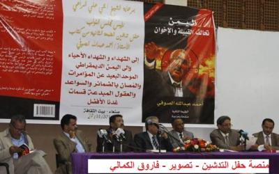 مؤلف الكتاب الاستاذ احمد عبدالله الصوفي عبر من جانبه في كلمة قصيرة عن شكره للشهداء الاحياء الذين عايشهم للاطلاع على تفاصيل الجريمة ، مترحما على جميع شهداء الاعتداء الارهابي والجريمة التي قال انها ستبقى وصمة عار في التاريخ السياسي ،