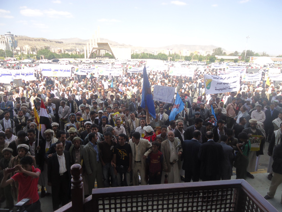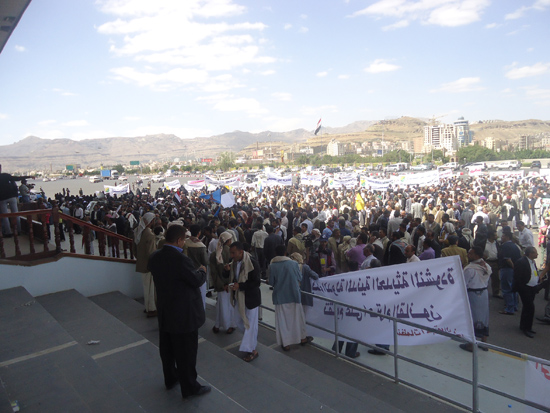 تنديد واسع بجرائم شبيحة الاصلاح في الجامعة وتمرد باسندوة (صور) طالب المشاركون في التظاهرة الحاشدة التي نظمتها قيادة جامعة صنعاء ومنظمات المجتمع المدني اليوم بميدان السبعين بالعاصمة صنعاء بسرعة إلقاء القبض على مثيري الفوضى ومرتكبي الاعتداء على رئاسة الجامعة ورئيسها الأستاذ الدكتور أحمد باسردة وموظفيها ومن يقف وراءهم تخطيطا وتنفيذا وإحالتهم إلى الجهات المختصة لينالوا جزاءهم العادل. ونددوا بالإجراءات المخالفة للدستور والقانون والتي تتعارض مع قرارات رئيس الجمهورية وكافة المحاولات الرامية إلى تعطيل التسوية السياسية والنأي بالجامعات عن المكايدات والصراعات الحزبية باعتبارها مؤسسات تعليمية لكل أبناء الوطن. واعتبر المتظاهرون مهاجمة من اسموهم (شبيحة الاصلاح) لمبنى رئاسة الجامعة سلوكا همجي واعتداء سافر لقدسية الحرم الجامعي وعبثا بالوفاق الوطني ونصوص وأحكام المبادرة الخليجية وآليتها التنفيذية المزمنة الملزمة لكافة أطراف العملية السياسية . واستهجنوا اصرار رئيس مجلس الوزراء الاستاذ محمد سالم باسندوة على تعصبه وعدم وفاقيته وتعمده فتح ابواب جديدة للازمة في ظل غياب رئيس الجمهورية وذلك بتكراره اصدار عدد 3 قرارات غير قانونية بتعيينات متتالية واستماتته على اعتساف الوظيفة العامة وتأكيد فشله في احتواء القضية انطلاقا من مسئوليته تجاه طلاب جامعة صنعاء وواجبه الوظيفي ومهامه القانونية . مشيرين الى انه كان على رئيس الوزراء تشكيل لجنة للتحقيق في الاحداث بدلا من تعمده الانتقاص من قرارات رئيس الجمهورية والتعدي على سلطاته وصلاحياته الدستورية والقانونية بهدف تقويض التسوية السياسية برمتها وتعطيل التعليم الجامعي والإضرار بمنتسبيها وطلابها والاستحواذ بالقوة على الجامعة لصالح طرف سياسي بعينة مخالفة للدستور والقانون". وشدد المشاركون في بيانهم على ضرورة وضع حد لإعمال العنف والتخريب التي تمارس داخل جامعة صنعاء وردع ومحاسبة من يقوم باستخدام العناصر المأجورة من خارج الجامعة وتوفير الحماية الأمنية اللازمة لمنتسبي جامعة صنعاء لخلق البيئة الملائمة لأداء الرسالة التعليمية السامية. وأكدوا على مساندتهم والتزامهم الكامل بقرارات رئيس الجمهورية وتوجيهاته والوقوف خلفه في هذه المرحلة الصعبة في كل ما يخدم وطننا الحبيب ومصالحه العليا. |