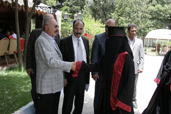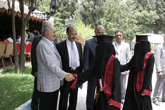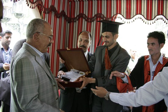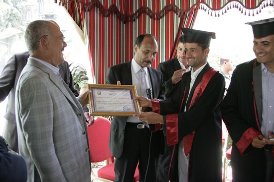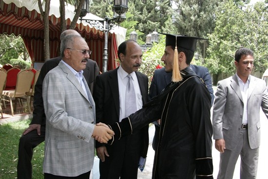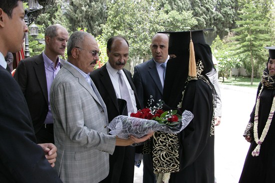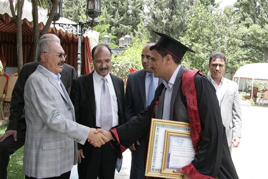 رئيس المؤتمر يستقبل عدداً من خريجي كلية الآداب بجامعة صنعاء (صور) أستقبل الزعيم علي عبدا لله صالح رئيس المؤتمر الشعبي العام صباح اليوم عدد من الخريجين والخريجات من دفعه رواد الأدب - كليه الآداب - قسم انجليزي -جامعه صنعاء ودفعه أخصائيون بلا حدود - كليه الآداب قسم الخدمة الاجتماعية ودفعة 28 علم نفس - كليه الآداب -جامعه صنعاء والدفعة الخامسة معا للقمة. وهنأ الزعيم علي عبدالله صالح الطلبة الخريجين وتفوقهم العلمي متمنيا لهم أن يلعبوا دورا مهماً ورائداً في خدمة اليمن أثناء الفترة القادمة متحلين بالعلم والمعرفة في مشوارهم التعليمي. الخريجون بدورهم قدموا دروع تذكارية لرئيس المؤتمر الشعبي العام تقديرا لما قدمه من دعم وتشجيع كبير لأبنائه الطلاب وخدمة للوطن في كافة المجالات. عدسة المؤتمرنت تنشر مجموعة من صور الاستقبال |