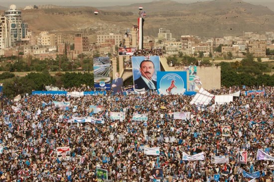 صنعاء: طوفان بشري ملاييني في ذكرى تأسيس المؤتمر (صور5) شهدت العاصمة صنعاء صباح اليوم طوفانا بشريا غير مسبوق في تاريخ اليمن للمشاركة في المهرجان الملاييني احتفاءً بالذكرى الـ35 لتأسيس المؤتمر الشعبي العام في ميدان السبعين، والتي تأتي بعد نحو عامين ونصف من العدوان والحصار الجائر على اليمن، وشوهدت صور آلاف الشهداء من ضحايا جرائم العدوان السعودي.