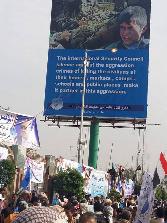 شهد ميدان السبعين بصنعاء فجر أمس تقاطر مئات الآلاف من اليمنيين احتفاءا بالذكرى الـ35 لتأسيس المؤتمر الشعبي العام.