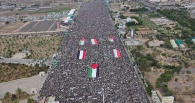 اليمن يؤكد الجهوزية لمواجهة التصعيد الأمريكي والصهيوني شهدت العاصمة صنعاء اليوم، حشداً جماهيرياً مليونياً في مسيرة "ثابتون مع غزة في مواجهة التصعيد الأمريكي الإسرائيلي" نصرة لفلسطين وتحدياً للعدو الأمريكي. وأعلنت الحشود المليونية، الاستنفار والجهوزية الكاملة لمواجهة التصعيد والعدوان الأمريكي والصهيوني على الشعبين اليمني والفلسطيني، حتى تحقيق النصر. وأكدت الجماهير المحتشدة، أن العدوان الأمريكي مهما تمادى في إجرامه وإرهابه فإنه لن يثني شعب الإيمان والحكمة عن مواصلة دعم وإسناد الشعب الفلسطيني والدفاع عن قضايا الأمة ومقدساتها مهما كانت التضحيات والتحديات. وأشادت بالعمليات البطولية التي تنفذها القوات المسلحة ضد الأهداف الحيوية للعدو الصهيوني وحاملات الطائرات والبوارج الأمريكية التي تعتدي على الشعب اليمني ومقدراته. وأوضح بيان صادر عن المسيرة، أنه واستمراراً للمواقف المشرفة ليمن الايمان والحكمة والجهاد، خرج الشعب اليمني اليوم في مسيرات مليونية جهاداً في سبيل الله، وابتغاء لمرضاته، ونصرة للشعب الفلسطيني المسلم المظلوم ورداً على العدوان الأمريكي الصهيوني على بلدنا. وأكد " ثبات موقفنا مع غزة - متوكلين على الله، وواثقين به، ومعتمدين عليه مهما صعد العدو الأمريكي، وأننا لن نتخلف عن تنفيذ توجيهات الله الواضحة في القرآن الكريم تحت تأثير الضغط الأمريكي أو غيره، ونعلن استعدادنا لأي نوع من أنواع التصعيد، واستمرارنا في كل أنواع الدعم والمساندة للشعب الفلسطيني رسمياً وشعبياً بالعمليات العسكرية، وبالتعبئة العامة، وبالخروج المليوني، وبالفعاليات والأنشطة، والانفاق في سبيل الله، وبالمقاطعة الاقتصادية للأعداء، وبالعمل الإعلامي والثقافي والتعبوي". ودعا "شعوب الأمة إلى التحرك معنا في هذا التوجه استجابة الله دفاعا عن أنفسنا أمام استباحة الأعداء لنا ولبلداننا، وإلا فالخزي والذل هو ير في الدنيا، والعذاب الأليم في الآخرة".. سائلا الله سبحانه وتعالى أن "يعجل بالنصر والفرج للشعب الفلسطيني المظلوم ولمجاهديه الأعزاء، وأن ينصرنا بنصره، وأن يرحم شهداءنا، وأن يشفي جرحانا، ويفرج عن اسرانا، إنه سميع مجيب الدعاء". |