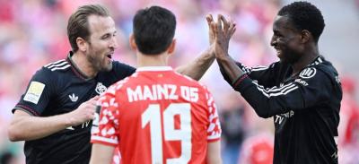 بايرن يحتفل بلقبه الـ35 احتفل بايرن ميونخ بتتويجه بلقب الدوري الألماني لكرة القدم للمرة الـ35 في تاريخه، عقب فوزه المثير على مضيفه ماينز بنتيجة 4 - 3 ضمن منافسات الجولة الحادية والثلاثين. وقلب الفريق البافاري تأخره بثلاثة أهداف دون رد إلى فوز درامي، ليحسم المباراة في الدقائق الأخيرة، رافعًا رصيده إلى 82 نقطة في صدارة الترتيب، ومعززًا رقمه القياسي من حيث عدد الأهداف المسجلة. وشهدت المباراة تألق عدد من لاعبي بايرن في الشوط الثاني، حيث نجح الفريق في العودة تدريجيًا قبل أن يسجل هدف الفوز الحاسم في الدقائق الأخيرة. وفي بقية النتائج، فاز هايدنهايم على سانت باولي 2 - صفر، وتغلب باير ليفركوزن على كولن 2 - 1، وتعادل أوغسبورغ مع آينتراخت فرانكفورت 1 - 1، وفولفسبورغ مع بوروسيا مونشنجلادباخ دون أهداف. |