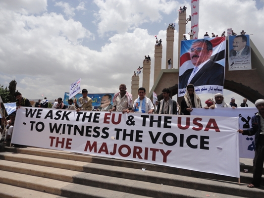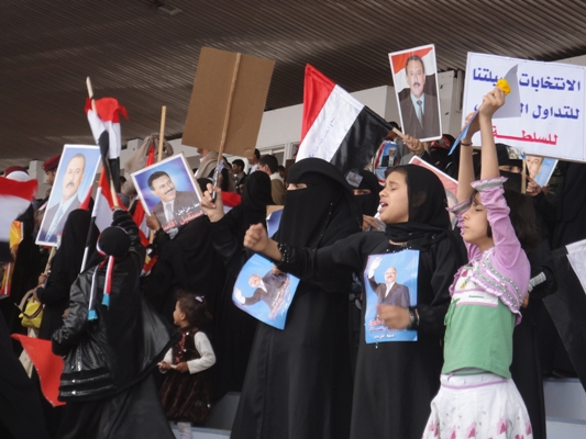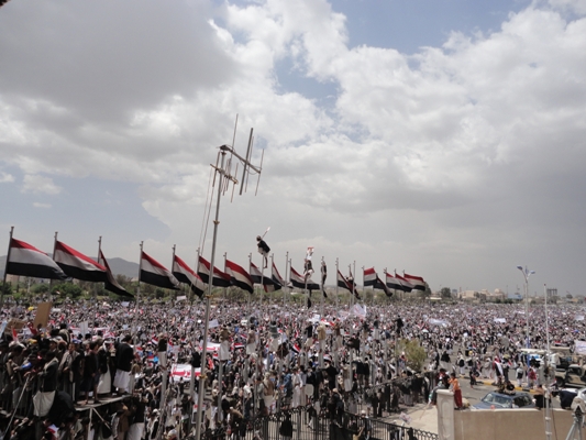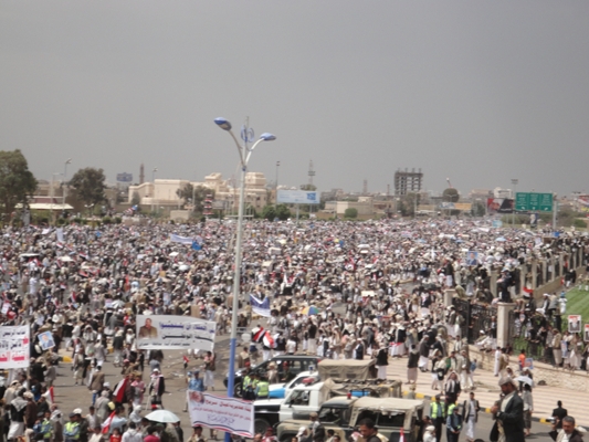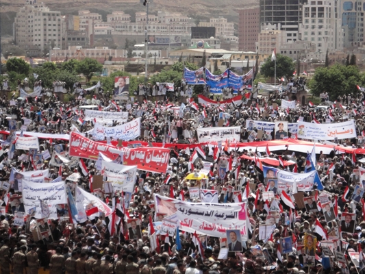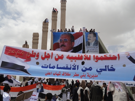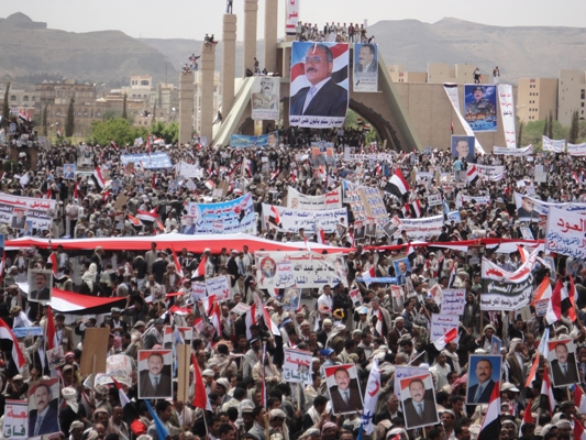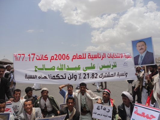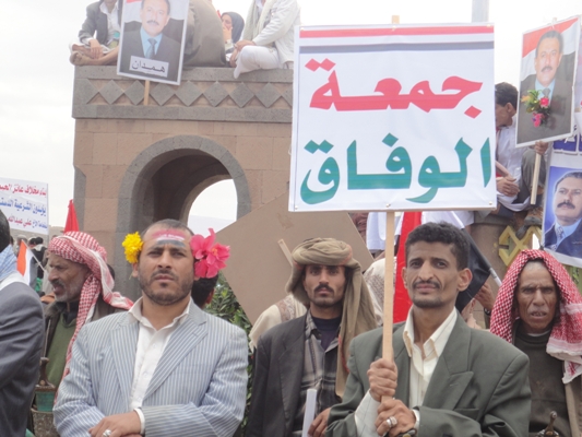 ملايين اليمنيين يشاركون في فعاليات جمعة الوفاق في عموم محافظات اليمن احتشد الملايين اليوم الجمعة بالعاصمة صنعاء وعموم المحافظات في اليمن للمشاركة في فعاليات جمعة الوفاق تأييداً للشرعية الدستورية والحوار والأمن والاستقرار ورفضاً لكل دعوات الفوضى والفتنة. وغطى المتظاهرون ساحات ميداني التحرير والسبعين والشوارع والأحياء المحيطة بهما في يوم تاريخي جسد حجم التلاحم الوطني حول القيادة السياسية ممثلة بالرئيس علي عبدالله صالح – رئيس الجمهورية. وردد المتظاهرون عقب صلاة الجمعة وخطبتيها الهتافات المؤيدة للشرعية الدستورية والأمن والاستقرار والتنمية رافضين بشدة أي محاولة للانقلاب على الديمقراطية وحق الأكثرية. ورفع المتظاهرون لافتات تطالب دول مجلس التعاون الخليجي باحترام رأي الأكثرية، وأكد المتظاهرون عدم تنازلهم عن حقهم الدستوري داعيين إلى الكف عن التطاول على إرادة الشعب. وردد المتظاهرون هتافات "الشعب يريد علي عبدالله صالح" و "بالروح بالدم نفديك يايمن". ورفض المتظاهرون أي محاولة للانقلاب على إرادة الشعب التي قالها في2006م مذكرين بنتائج الانتخابات الرئاسية عام 2006م والتي حاز فيها الرئيس علي عبدالله صالح على نسبة 77.17% من إجمالي المشاركين في الانتخابات. وأكد المتظاهرون أن الانتخابات هي الوسيلة السلمية للتداول السلمي للسلطة. وطالب المتظاهرون بالاحتكام للأغلبية من أجل وطن موحد خالي من الانقسامات. ورفع المتظاهرون لافتات تؤرخ لمسيرة اليوم (جمعة الوفاق) تحت عناوين "ونؤرخ للمكذبين" كما رفعوا مجسماً لصندوق الانتخابات. |