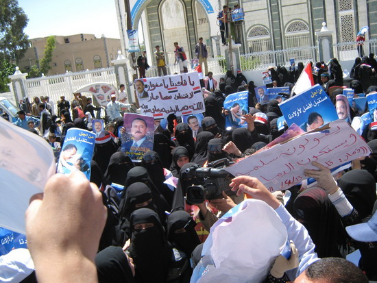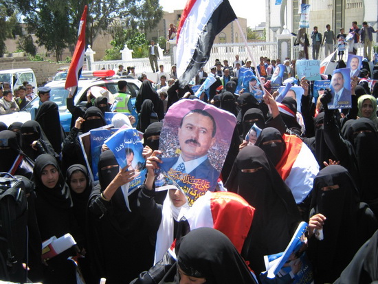 مسيرة نسويه حاشدة بمدينة ذمار تأييدا للشرعية الدستورية خرجت الآلاف من نساء مدينة ذمار في مسيرة جماهيرية حاشدة جابت شوارع مدينة ذمار تأييدا للشرعية الدستورية والمبادرات التي أطلقها رئيس الجمهورية. ورددت المشاركات في المسيرة الهتافات المعبرة عن التأييد للشرعية الدستورية والقيادة السياسية ممثلة بفخامة الرئيس علي عبدالله صالح رئيس الجمهورية. ودعت المشاركات أحزاب اللقاء المشترك إلى تحكيم العقل والمنطق والعودة إلى طاولة الحوار للوصول إلى الحلول المنطقية للخروج من الأزمة الحالية، وتغليب المصلحة الوطنية على المصالح الخاصة. ![]() واستنكرت المشاركات في المسيرة محاولات الالتفاف على الإرادة الشعبية التي عبر عنها الشعب عن طريق صناديق الاقتراع في الانتخابات الرئاسية 2006م، وكذا محاولات الالتفاف على النهج الديمقراطي الذي اختطه اليمن كخيار وحيد للتداول السلمي للسلطة. وأدانت نساء مدينة ذمار أعمال العنف والعبث التي طالت بعض المنشآت العامة والخاصة في بعض المحافظات والتي تتنافى مع الأخلاق والأعراف التي عرف بها شعبنا اليمني العظيم الرافض لكل أشكال العنف والفوضى والإضرار بالمصالح العامة والخاصة. ودعت المشاركات في المسيرة جميع أبناء اليمن إلى الالتفاف خلف الشرعية الدستورية وإسقاط كافة المؤامرات الهادفة إلى النيل من امن الوطن واستقراره ووحدته والتصدي لكل من يحاول العودة باليمن الى ما قبل الثورة والوحدة. وأشادت المشاركات بجهود أبطال القوات المسلحة والأمن المرابطين في مختلف مواقع الشرف والبطولة دفاعا عن امن الوطن واستقراره ووحدته. وانتقدت المشاركات أساليب المزايدة والتضليل التي تنتهجها بعض الوسائل الإعلامية والتي تهدف من خلالها الى جر اليمن نحو العنف والفتنة وحروب أهلية. وجددت المشاركات العهد والولاء لفخامة الأخ الرئيس علي عبدالله صالح رئيس الجمهورية مؤكدات استعدادهن لتقديم أرواحهن رخيصة من اجل امن واستقرار الوطن ووحدته. وألقيت خلال المسيرة كلمتان من كلا من وكيل محافظة ذمار المساعد عبدالكريم احمد ذعفان ومسئولة القطاع النسوي بالدائرة (194) بمدينة ذمار افتكار صالح الفقيه أكدت على أهمية التصدي لكافة المخططات التآمرية الهادفة إلى النيل من امن الوطن واستقراره ووحدته. وأعلنوا تأييد أبناء مدينة ذمار للشرعية الدستورية والمبادرات التي أطلقها فخامة الأخ الرئيس الداعية للحوار الوطني باعتبار الحوار هو الوسيلة المثلى للتغلب على مختلف التحديات المحدقة بالوطن. ![]() |