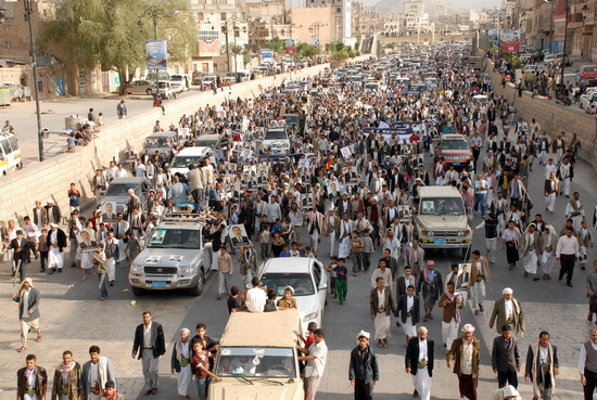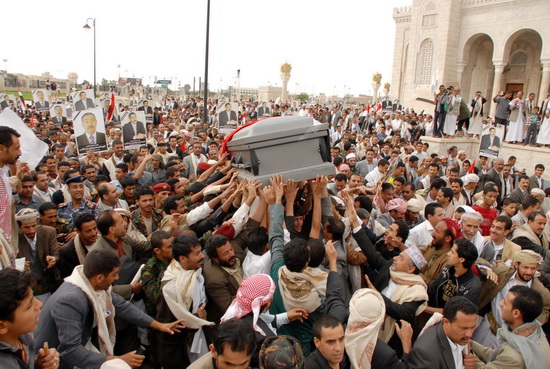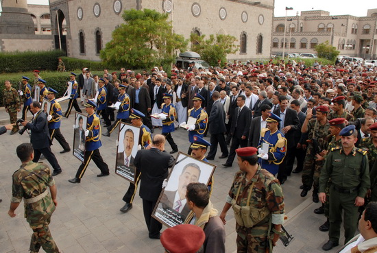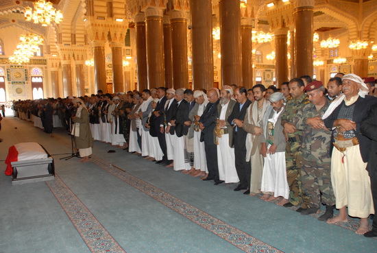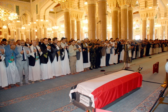 تشييع شهيد اليمن عبدالعزيز عبدالغني (صور1) في موكب جنائزي مهيب تقدمه عبد ربه منصور هادي نائب رئيس الجمهورية ومعه رئيس مجلس الوزراء الدكتور علي محمد مجور والمستشار السياسي لرئيس الجمهورية الدكتور عبدالكريم الارياني ونائب رئيس مجلس الشورى عبدالله البار وعدد كبير من اعضاء مجالس الوزراء والنواب والشورى وحشد كبير من الشخصيات السياسية والاجتماعية والمشائخ والاعيان والمواطنين شيع بصنعاء فقيد الوطن الكبير والشخصية الوطنية البارزة المناضل الجسور الشهيد الأستاذ عبد العزيز عبد الغني رئيس مجلس الشورى الذي وافاه الأجل بعد حياة حافلة بالنضال الدؤوب والعطاء السخي من أجل الوطن ووحدته ونهضته وذلك إثر إصابته في الحادث الإجرامي الغادر الذي استهدف فخامة رئيس الجمهورية وكبار قيادة الدولة بجامع دار الرئاسة في جمعة غرة رجب الحرام في الثالث من يونيو الماضي . ![]() ![]() ![]() ![]() ![]() ![]() ![]() ![]() ![]() ![]() ![]() ![]() ![]() ![]() ![]() ![]() ![]() ![]() ![]() ![]() |