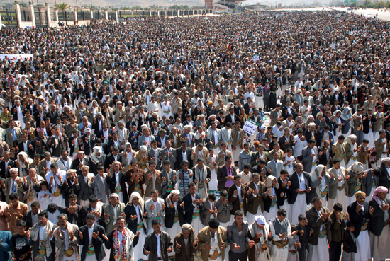جمعة إن للمتقين مفازا :الرحيل لقطاع الطرق والكهرباء ومحتلي الأحياء السكنية (صور) جمعة إن للمتقين مفازا: احتشد ملايين من أبناء اليمن في الساحات والميادين العامة في أمانة العاصمة وعموم محافظات الجمهورية في جمعة " ان للمتقين مفازا " لتجديد تأييدهم للشرعية الدستورية ورفضهم للفوضى والتخريب. ورفعت المسيرات والمهرجانات التي تلت صلاة الجمعة شعارات .. الرحيل للمتآمرين والعملاء الجبناء ، الرحيل لقطاع الكهرباء والطرق ومقلقي الأمن والاستقرار، فليرحل المحتلون للأحياء السكنية ، الخزي لمن يخيف المواطنين ، ويقلق أمنه ، العار.. لقطاع الطرق والكهرباء ، فلتخرس السنة العملاء المتآمرين. وردد المشاركون في المسيرات لن نسمح للحاقدين والمتآمرين المساس بالوحدة والجمهورية والديمقراطية، لن نسمح بأن يفرض علينا الأخوان المسلمين والناصريين والاشتراكيين والحوثيين أجندتهم وتناقضاتهم ، لا مجال للمساومة في المبادئ ولا مكان للعملاء والمتآمرين. ![]() ![]() ![]() ![]() ![]() ![]() ![]() ![]() ![]() ![]() ![]() ![]() ![]() ![]() ![]() ![]() ![]() ![]() ![]() ![]() ![]() |